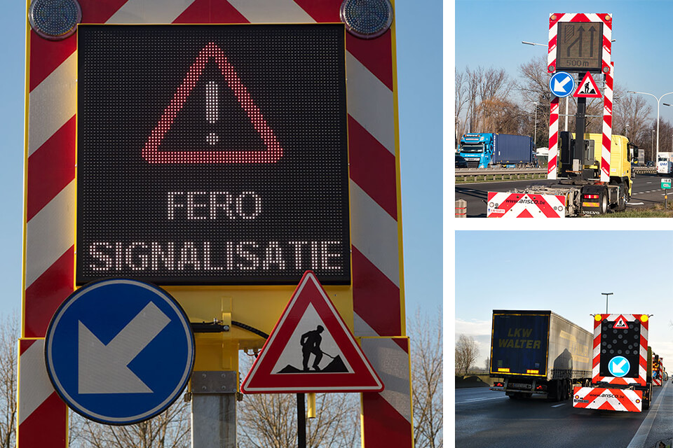 Een verhoogde botsabsorbeerder is uitgerust met een uitschuifbaar dynamisch led bord. Op dit LED bord kan een boodschap snel veranderd worden i.f.v. de verkeerssituatie.