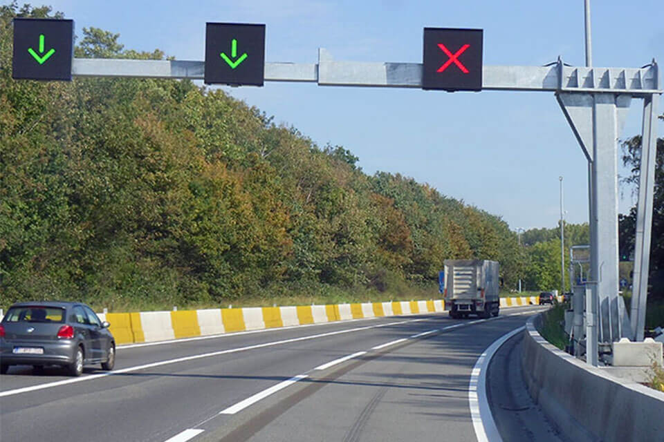 Dankzij onze portieken worden weggebruikers via dynamische rijstrooksignalisatie tijdig geïnformeerd.